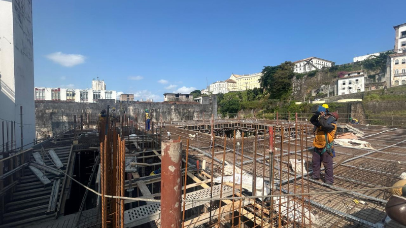 A reconstrução dos casarões históricos no bairro do Comércio, que abrigarão a Casa de Espetáculos e a Escola de Arte e Tecnologia Maestro Letieres Leite, já alcançou 35% de conclusão. Na Escola, as fundações, o reservatório inferior e as estruturas de concreto do prédio foram finalizadas, e as obras seguem com o revestimento das paredes e instalação de isolamento acústico.