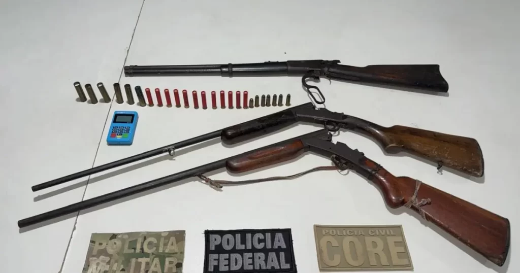 Durante o cumprimento dos mandados, também foram apreendidas armas e munições de calibre restrito. Todo o material recolhido foi encaminhado à Delegacia da Polícia Federal em Porto Seguro, onde serão adotados os procedimentos legais cabíveis.